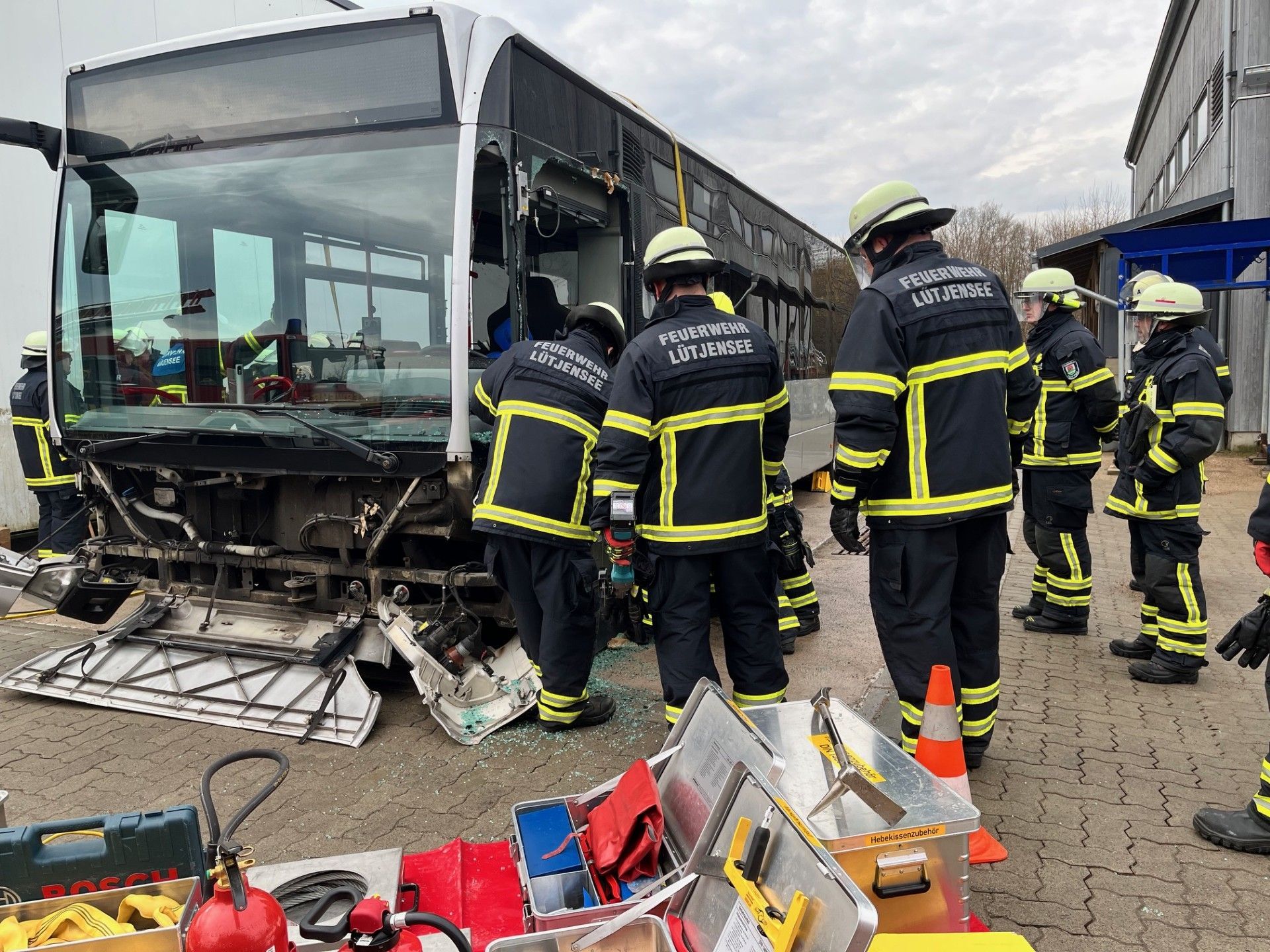 Wir wurden im Rahmen einer Alarmübung von der Feuerwehr Grönwohld als Unterstützung angefordert. In dem Übungsszenario wurde eine starke Rauchentwicklung in der Grundschule gemeldet. Mehrere Personen galten als vermisst. Wir unterstützten die ausrichtende Feuerwehr Grönwohld und die ebenfalls teilnehmende Feuerwehr Trittau zunächst mit Atemschutzgeräteträgern. Im weiteren Übungsverlauf übernahmen wir den rückwärtigen Einsatzabschnitt und bauten eine Wasserversorgung zu einem nahe gelegenen Hydranten auf. Parallel rückten wir zur Personensuche mit weiteren Atemschutztrupps in das Gebäude vor. Während der Tätigkeiten wurden mehrere Personen (Übungsdarsteller) am und im Gebäude aufgefunden, gerettet und dem Rettungsdienst übergeben. Die Übung endete nach ca. 2 Stunden mit einer Nachbesprechung.